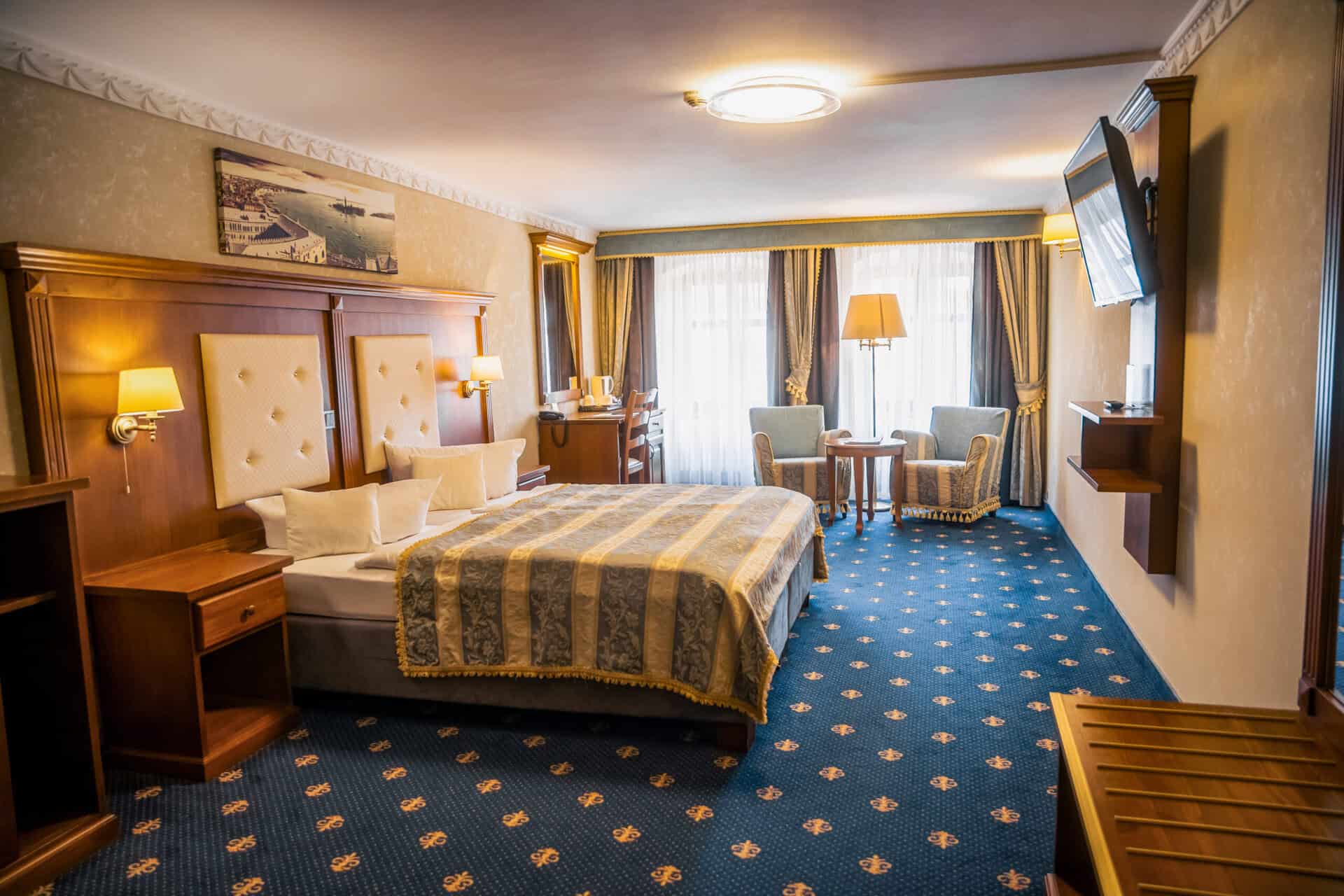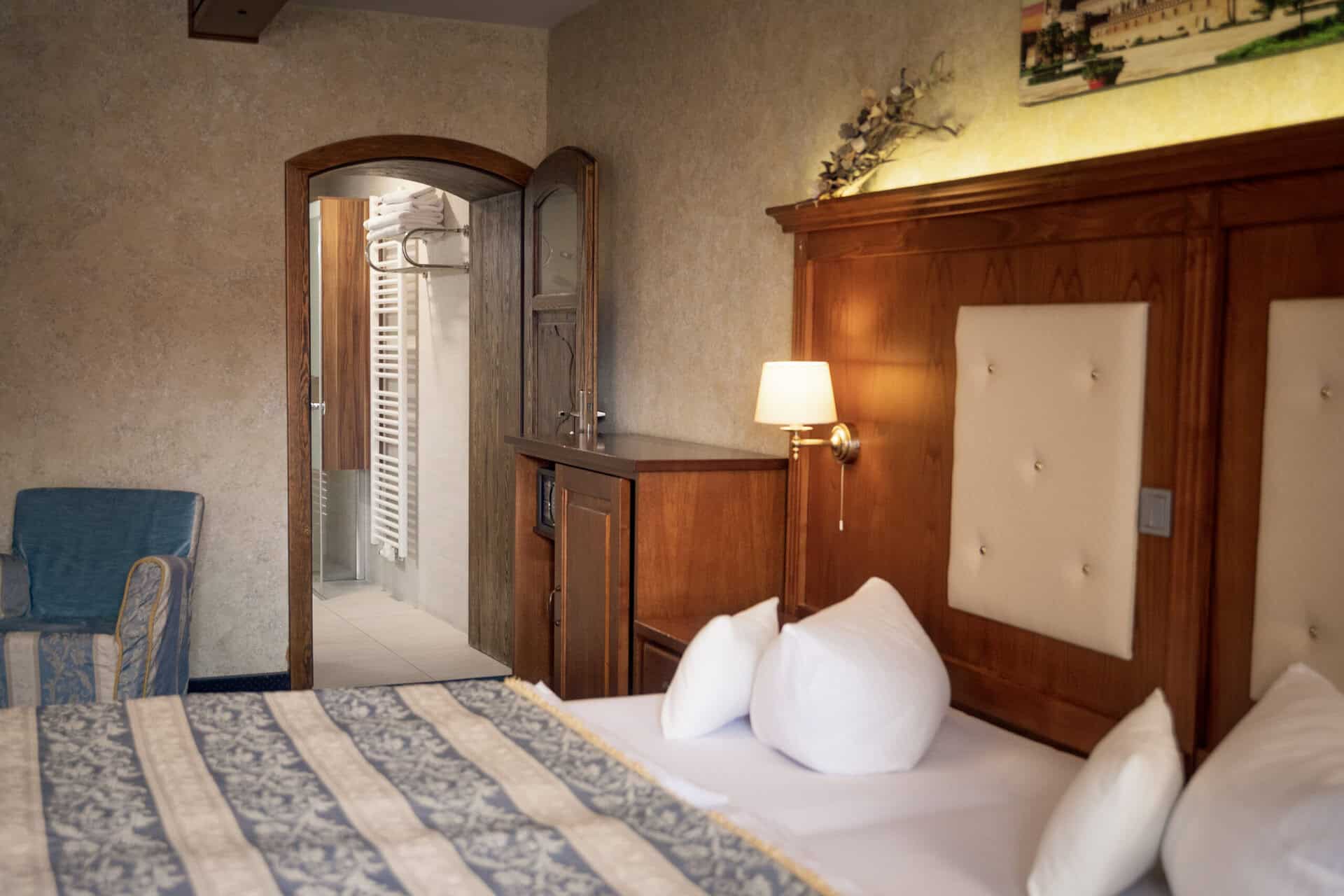 Unser Doppelzimmer bietet auf mindestens 36 m² großzügigen Raum für ein bis zwei Personen und vereint modernen Komfort mit stilvoller Einrichtung. Zur Ausstattung zählen ein Bad mit Dusche, ein LCD-TV, kostenfreies WLAN, ein Haartrockner und ein Safe. Ob mit getrennten Betten oder einem Doppelbett – hier schlafen Sie so, wie es Ihnen am besten entspricht. Eine gemütliche Sitzecke sowie ein Schreibtisch bieten zusätzlichen Komfort, egal ob zum Entspannen oder Arbeiten.